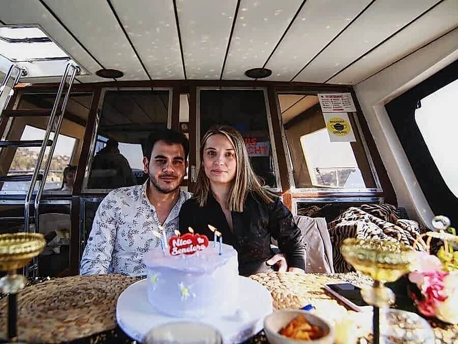 Yatta evlilik yıldönümü, İstanbul Boğazı’nda tamamen size ait özel bir yatla ilişkinizin en anlamlı gününü unutulmaz bir atmosfere dönüştürmenin en zarif yoludur. Şehir silüeti ve Boğaz manzarası eşliğinde sakin, romantik ve yalnızca size ait bir akşam yaşarsınız. 2 kişilik yemekli ve masa süslemeli yatta evlilik yıldönümü fiyatı 14.000 TL’den başlar.