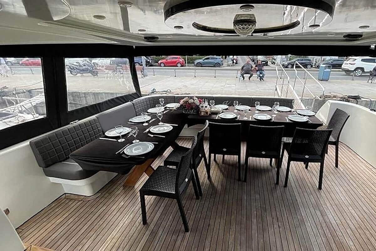 Geniş güvertesi, Boğaz'ın güzelliğini özgürce hissetmenizi sağlar. Kapalı alanı ve ısıtma sistemi sayesinde dört mevsim konforlu kullanım sunar. Bluetooth ve USB destekli ses sistemiyle kendi müziğinizi yanınızda getirebilir, teknenin ritmini siz belirleyebilirsiniz.