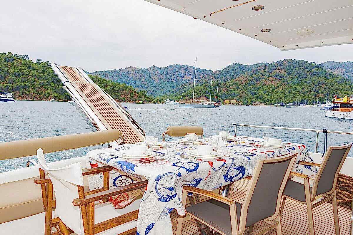 Yatın geniş güvertesi, manzaranın tadını çıkarmak isteyen misafirler için ferah bir alan sunar. İç salon ve kapalı alanlar yazın serin, kışın sıcak tutacak şekilde donatılmıştır. Bluetooth ve USB uyumlu ses sistemi sayesinde kendi müziğinizi getirebilir, Boğaz'ın ritmini kendiniz belirleyebilirsiniz.